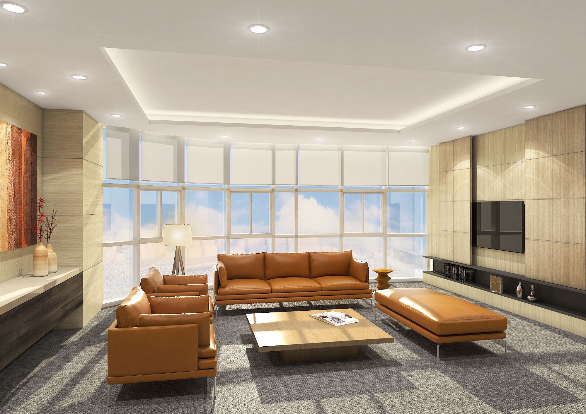 라운지의 낮은 시선과 부드러운 곡선은