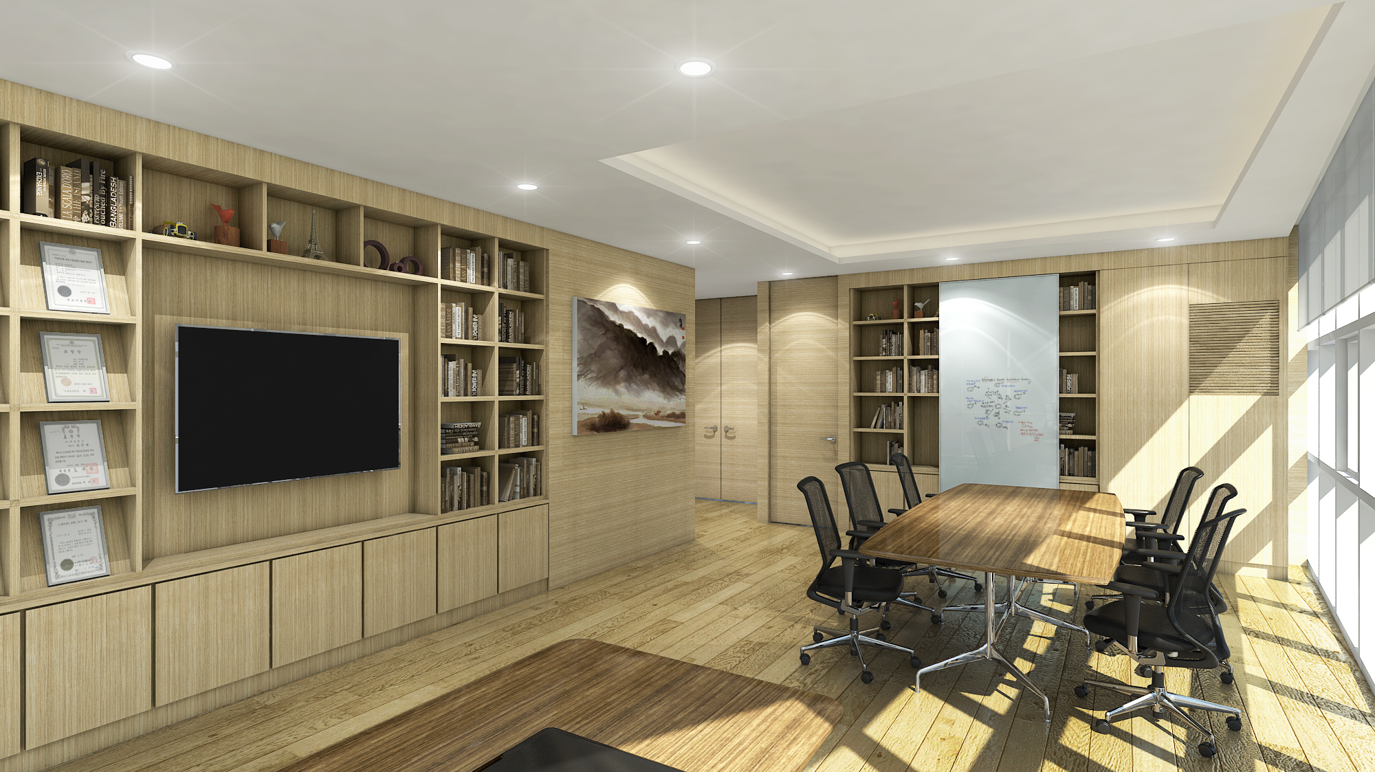 그리고 긴 테이블이 놓인 회의실에서는