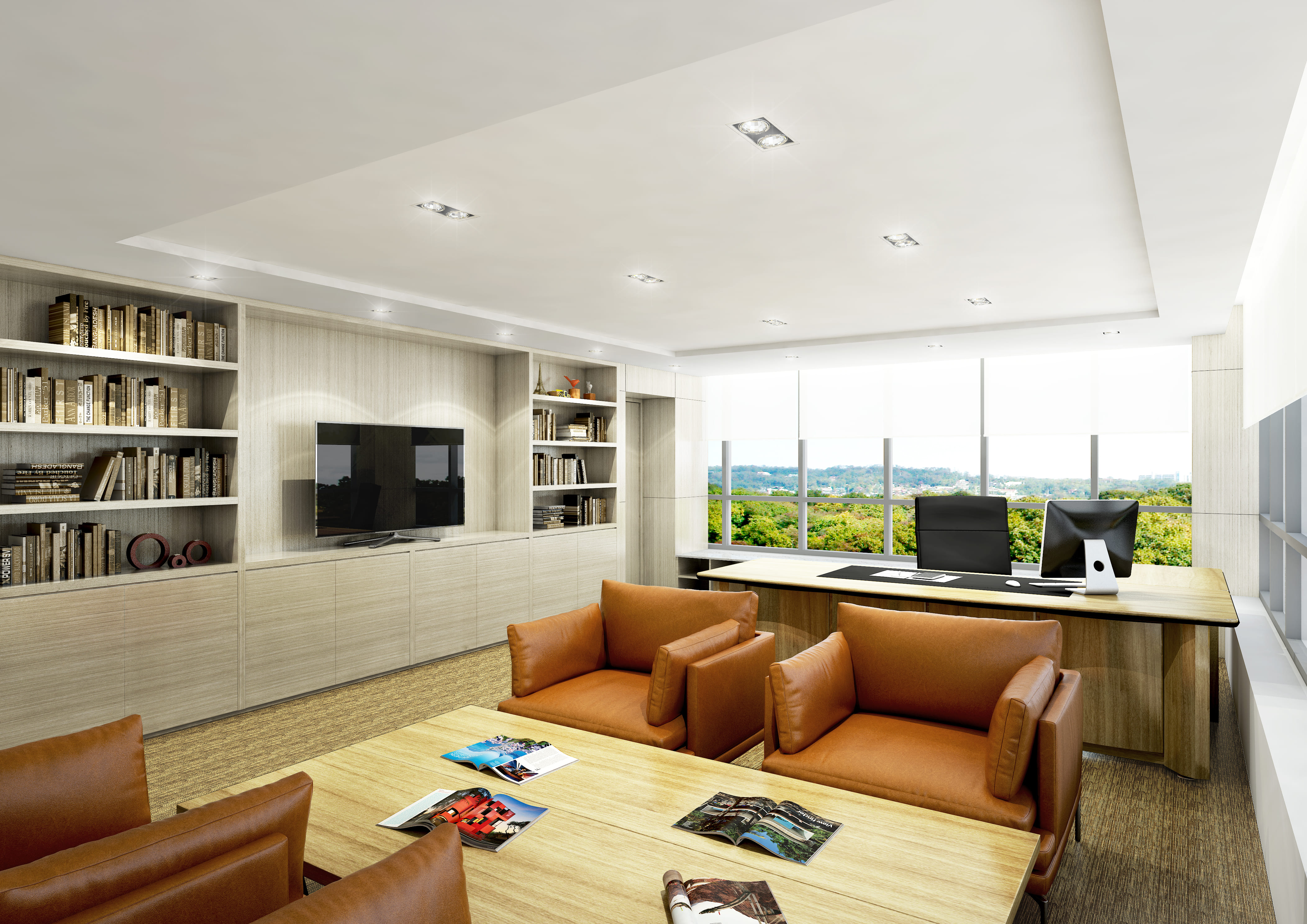 풍경을 등진 책상 위에서