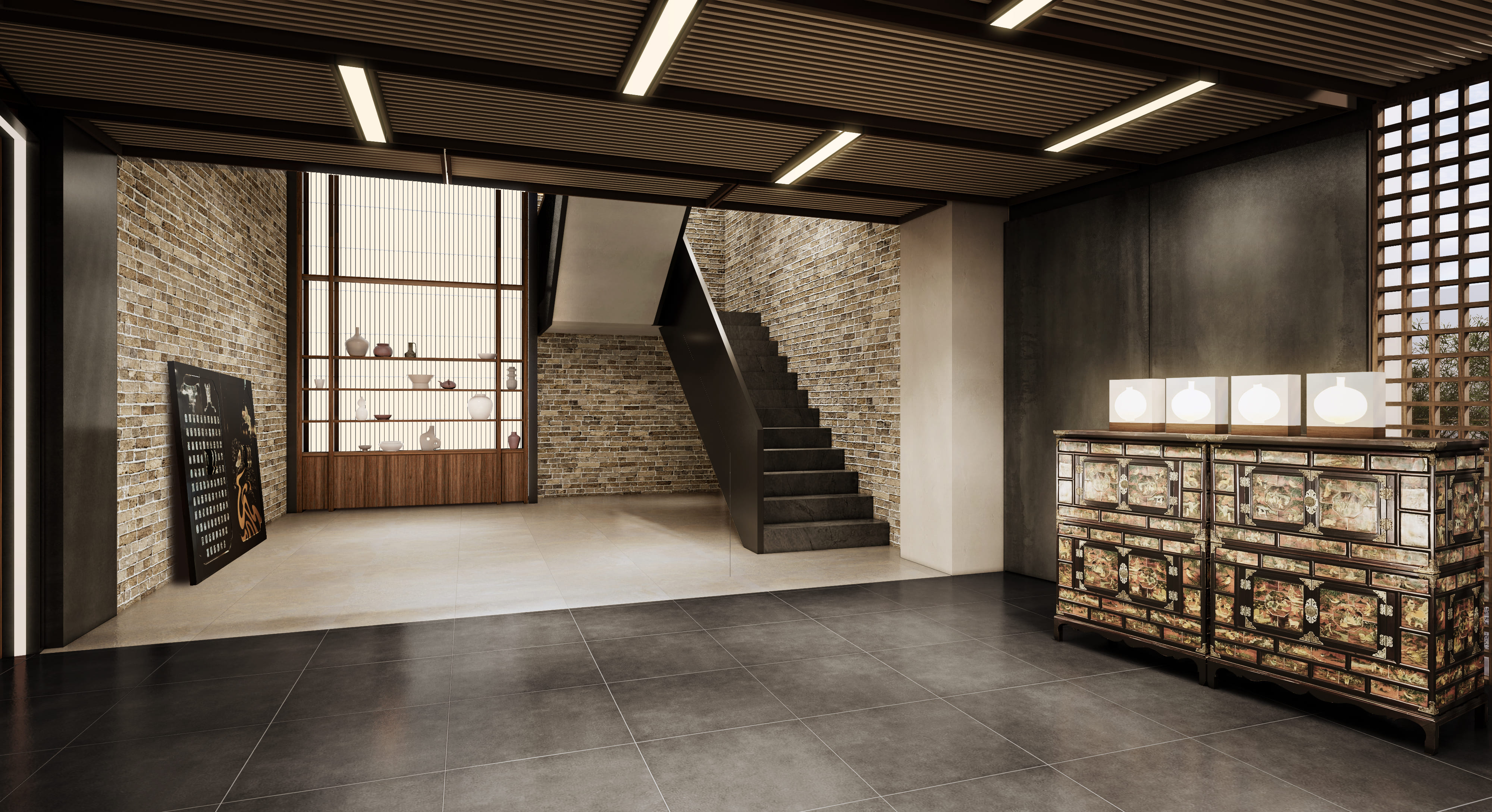 2층으로 오르면 빛은 더 낮아지고, 공간은 더 조용해집니다.