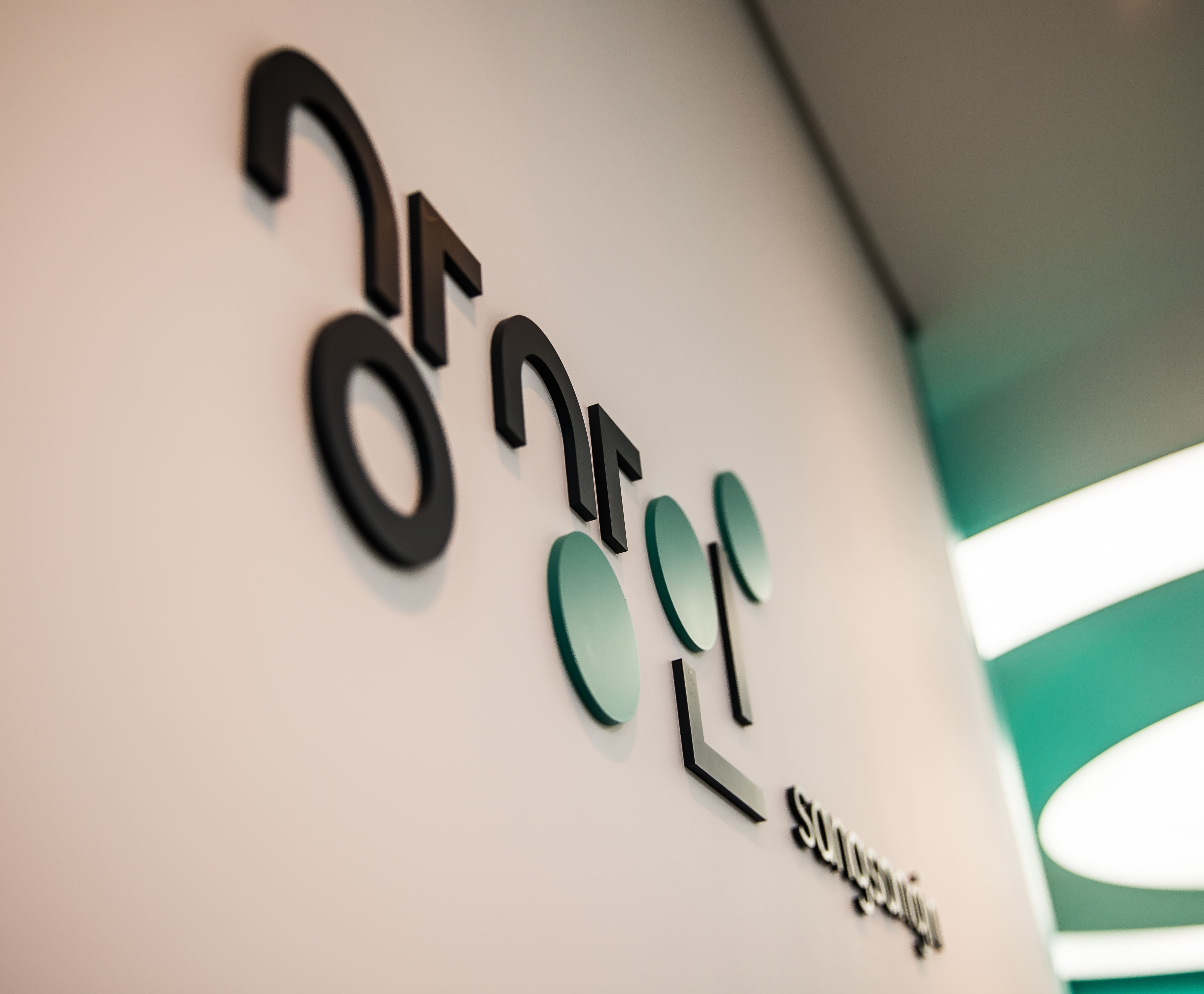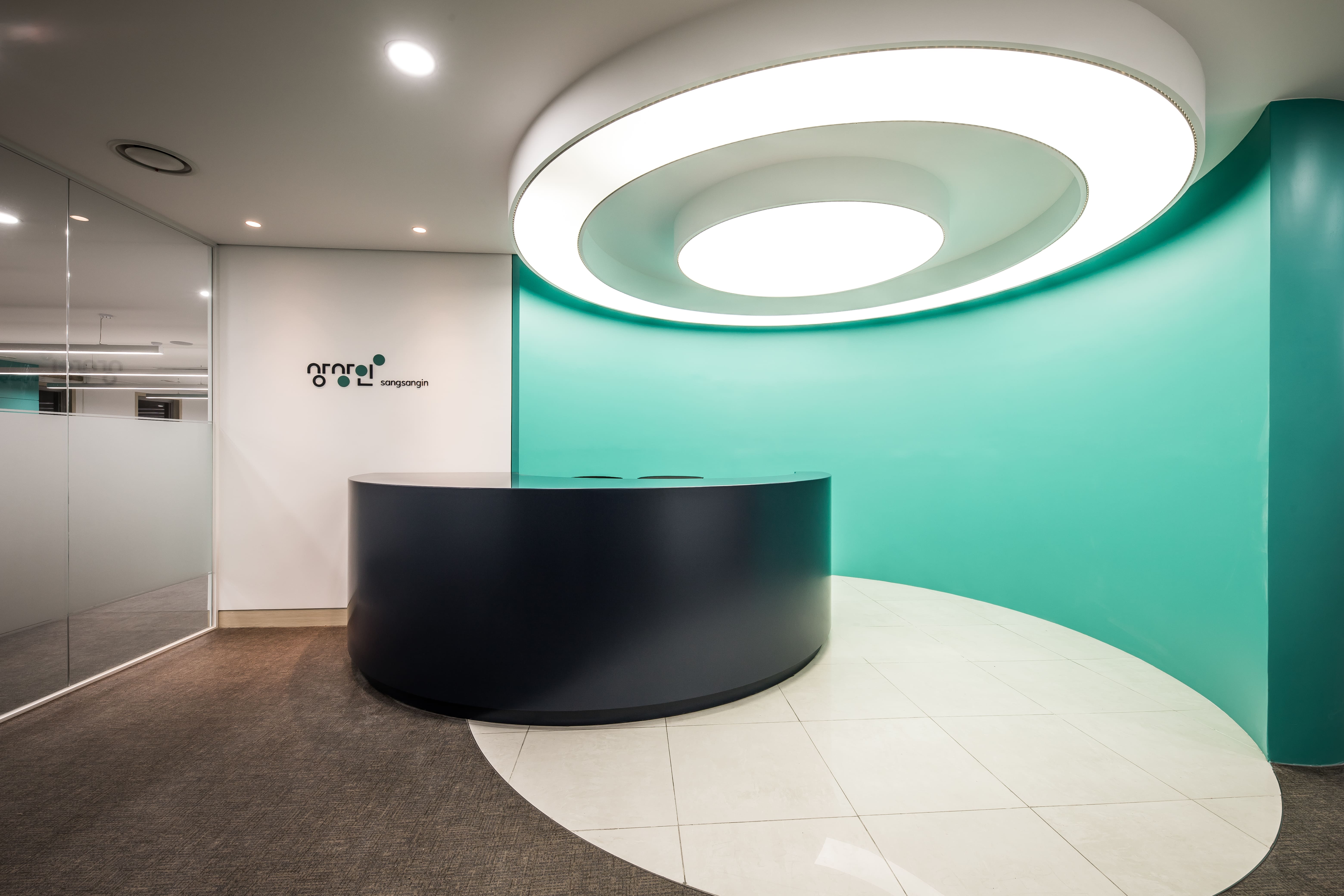 민트빛 곡선이 공간을 감싸고