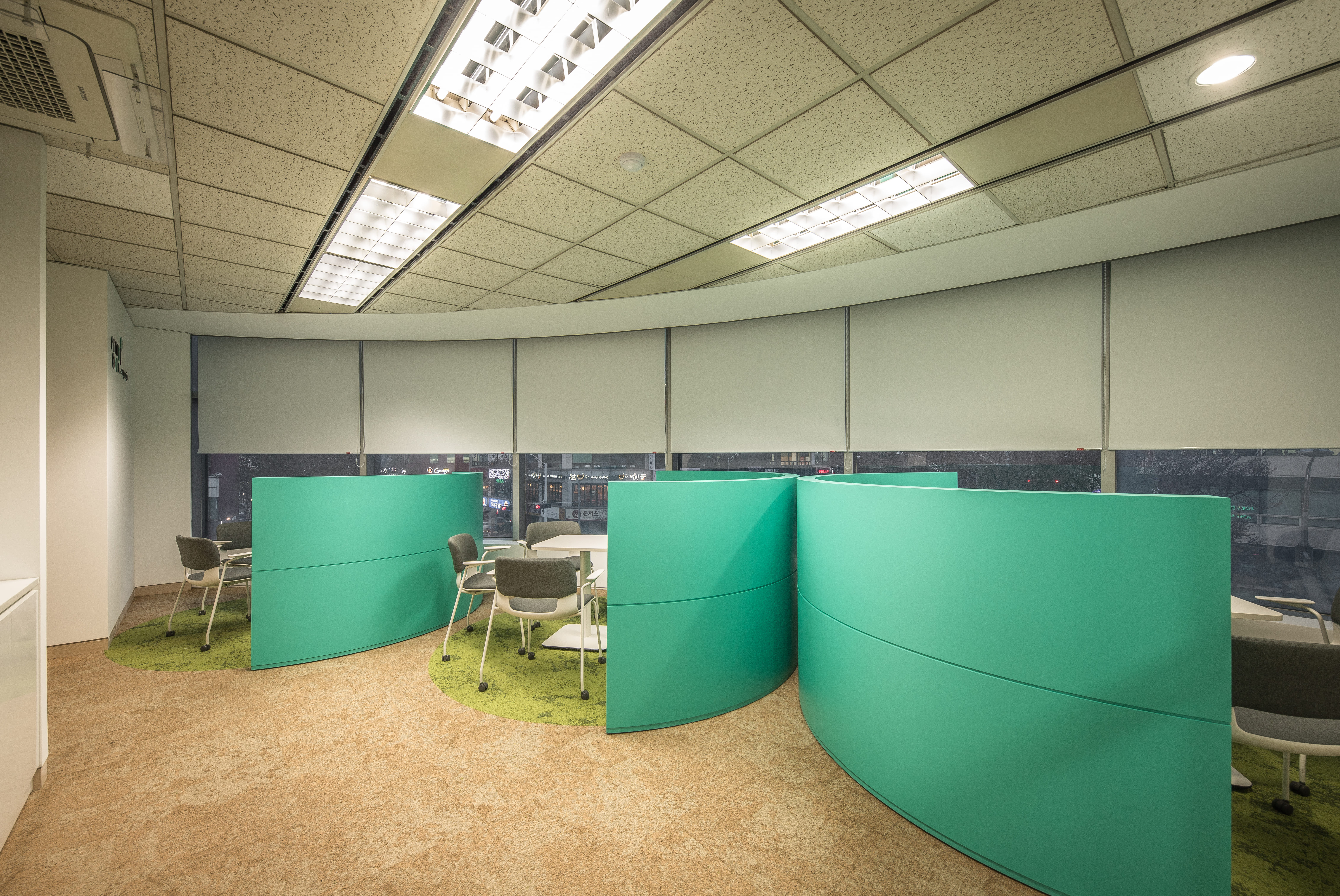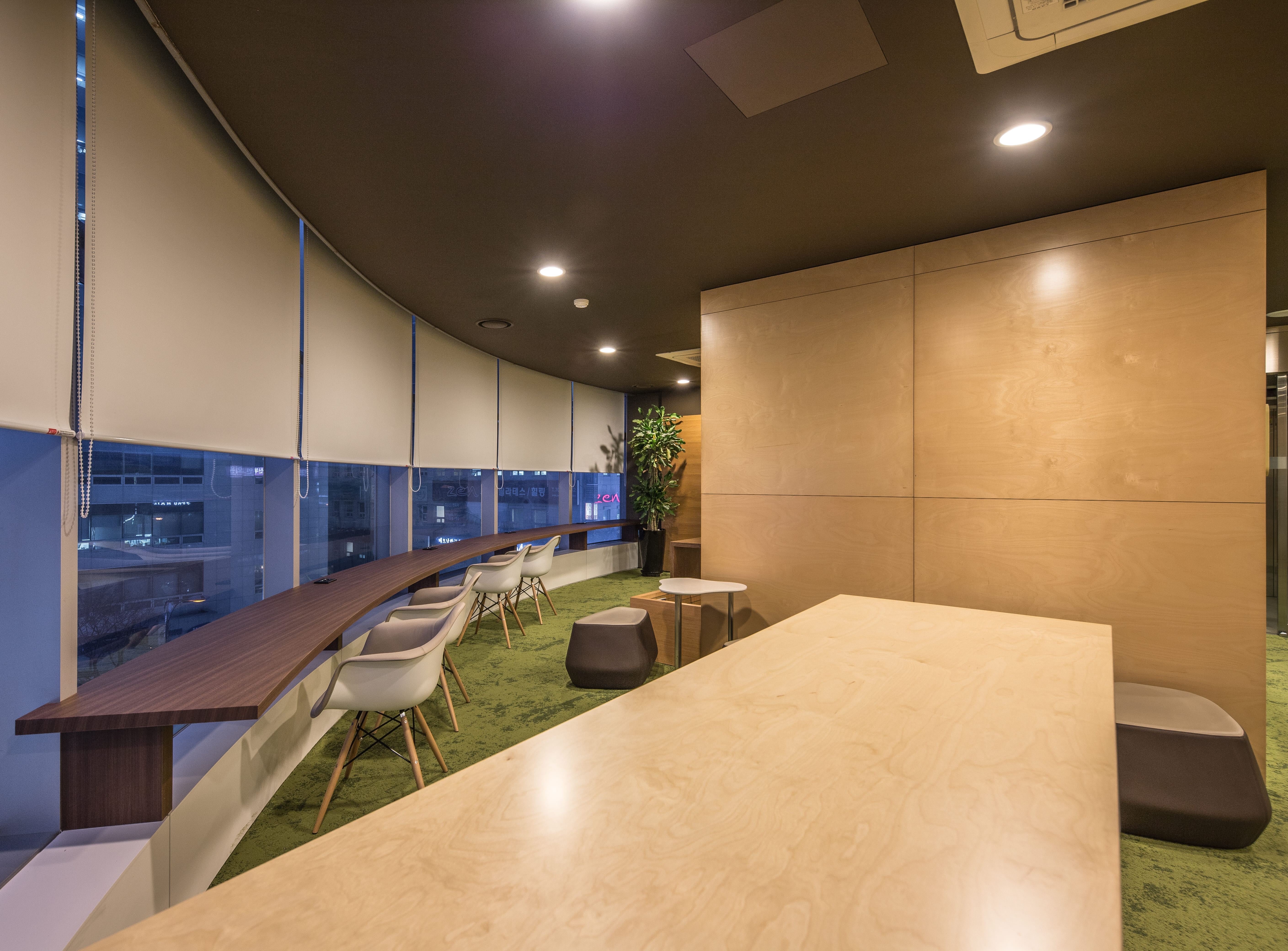 창가 라운지는 그린 톤의 여유로